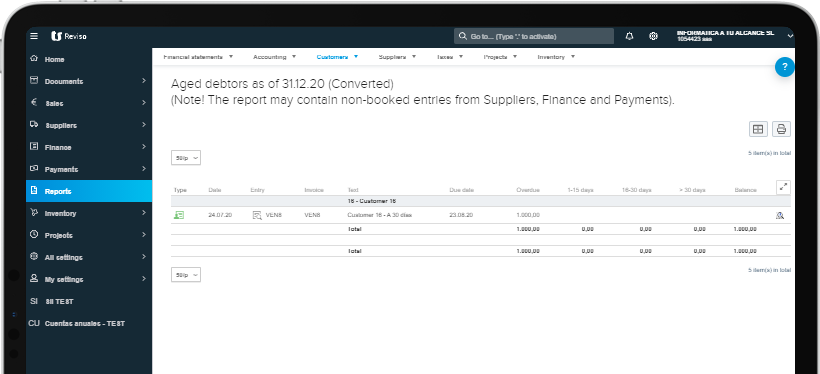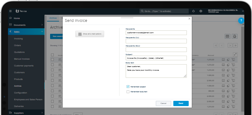 Each of the invoices issued from Reviso, and any other document sent to the application, remains saved and accessible at any time